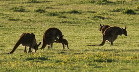 The larger kangaroos are more nocturnal, or at least crepuscular, than many people think (that is why your insurance doesn't cover rental cars in Western Australia if you drive on rural roads after dark).
